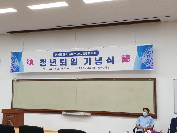 지난 2020년 8월 25일(화) 오후 5시, 의대 본관 합동강의실에서 정년퇴임기념식이 열렸다.