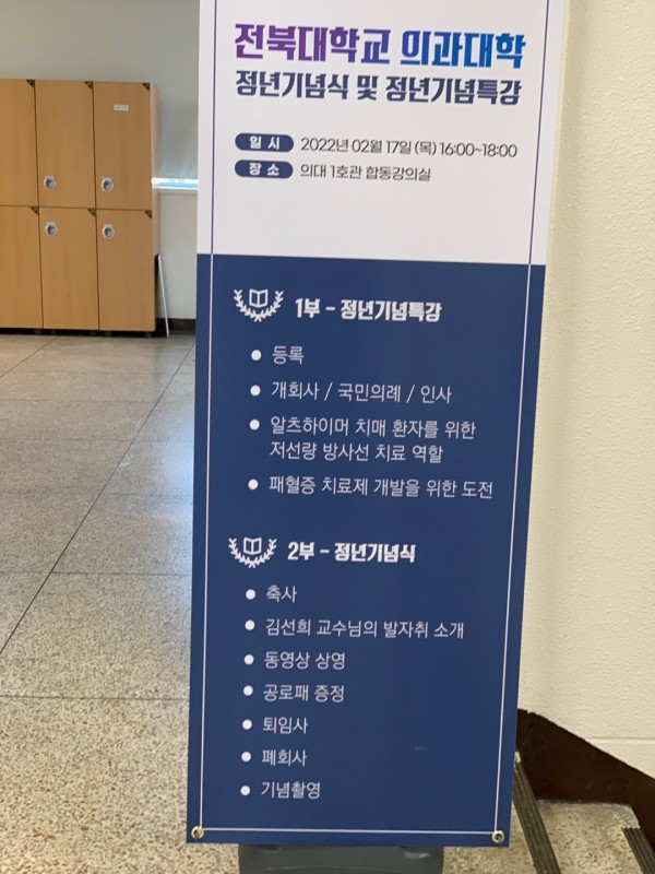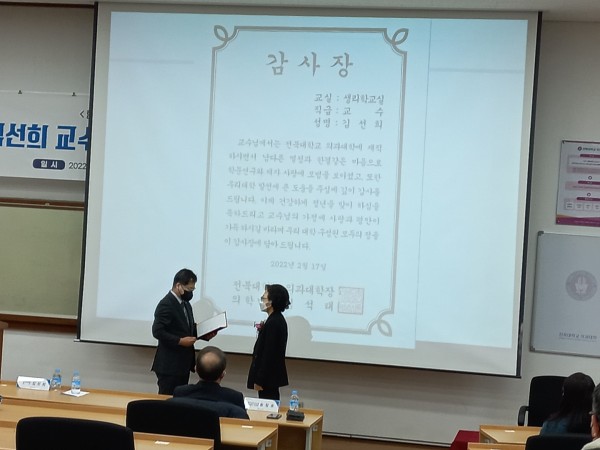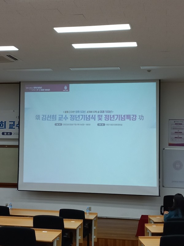 2022.02.17(목) 의대1호관 합동강의실에서 4회 김선희 교수님의 정년 기념식이 열렸습니다.