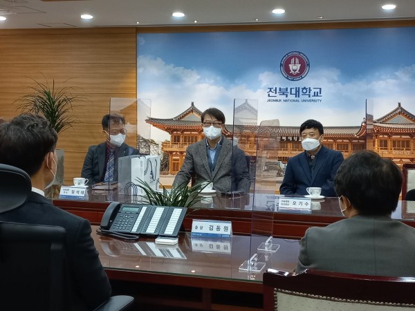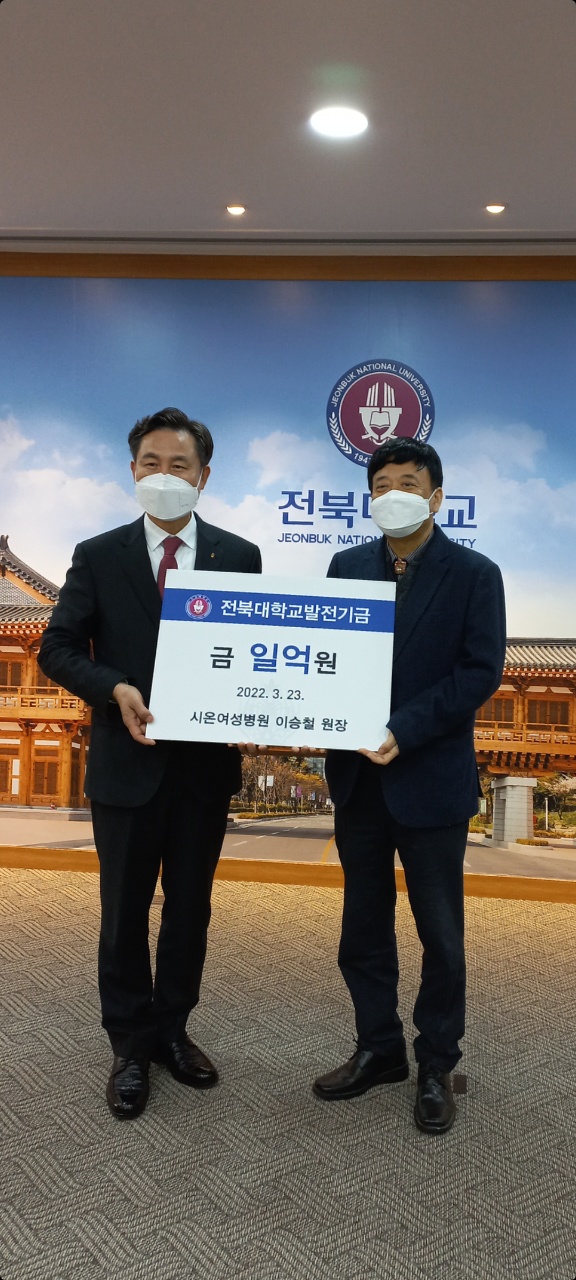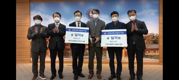 2022년03월23일(수) 전북대학교에서 김동원 총장과 함께 의대발전기금 전북대학교 발전기원재단 기탁식이 있었다.