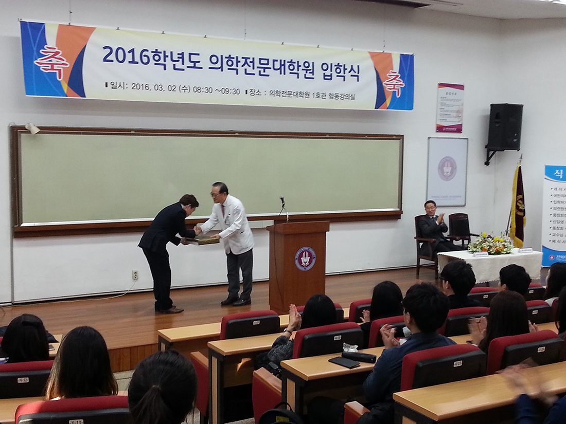 ////////////// 2016학년도 신입생 입학식- 동창회, 축하선물로 해부실습복 증정 ////////////