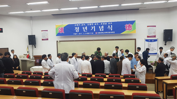 고재기, 오병찬, 조성남 교수(동문 1회 졸업)의 정년식