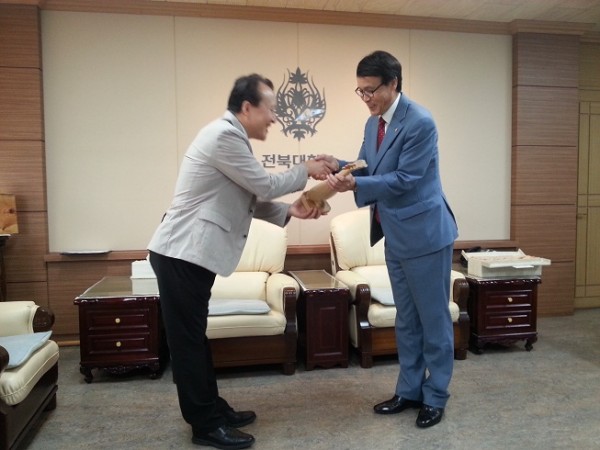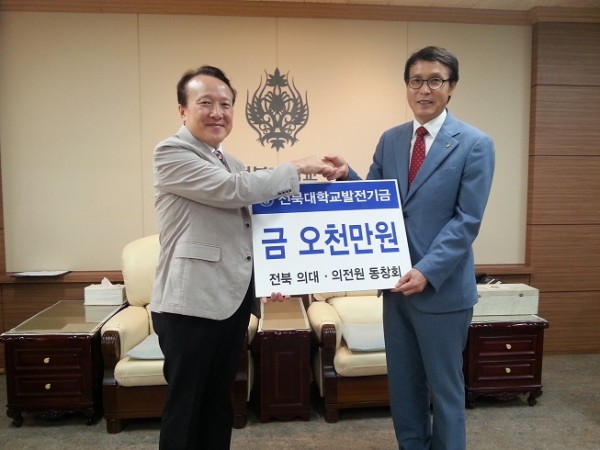 2015. 9. 2. 오전 11시~ 전북대학교총장실 참석: 도병룡 동창회장, 김형진 의전원장 기탁금: 5천만원(19회 동기회 2천5백만원+동창회일반회계 2천5백만원) 사진모음 게재중... |