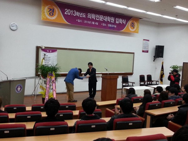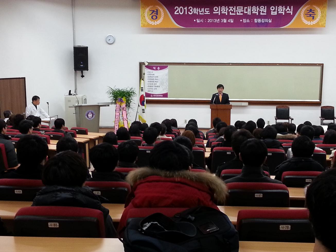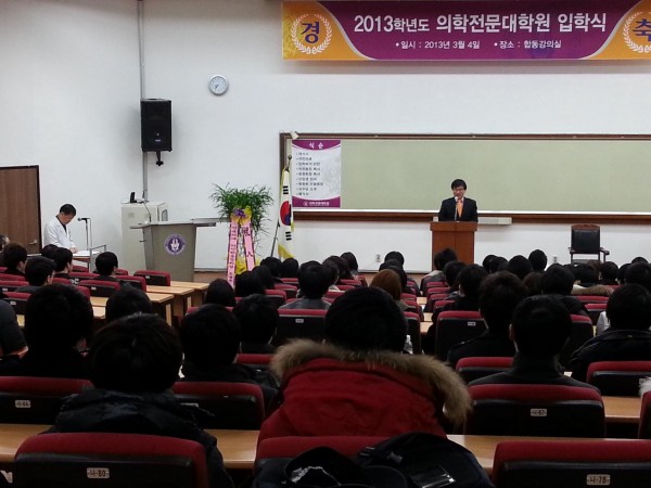 3월 4일(월) 오전, 합동강의실에서 2013학년도 의전원 신입생 입학식이 있었다.