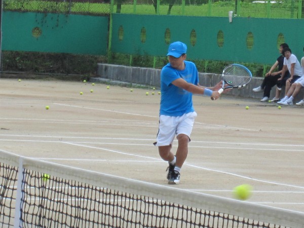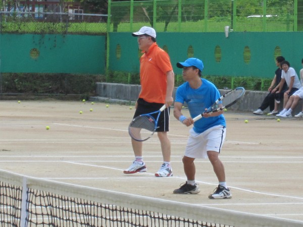 시합에 앞서 동문들이 코트에서 몸을 풀고 있는데, 시샘이라도 하듯 장대비가 퍼붓기 시작하여 금새 코트장이 물바다가 되었다. 허광렬 원장님이 (의대동문 테니스 회장) 전주기상대에 알아본 결과 오후에 강수 확률이 20%라고 하여 일단 점심식사 (뷔페)를 하면서 기다리기로 하였는데, 참석한 동문들의 마음이 하늘에 전달되었는지 1시부터 비가 그치기 시작하였으며, 좋은 코트장덕에 1시 30분에 운동이 가능하게 되었다.