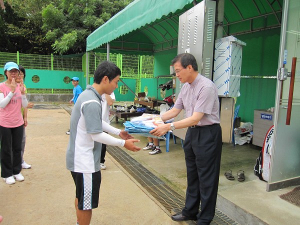 시상식에 앞서 의전원 테니스부 학생회원들에게 동창회장님이 상품 전달식도 가졌고, 입상한 동문들에게도 푸짐한 상품을 드렸다. 저녁식사 및 술로 뒤풀이를 하며 내년에도 이런 자리가 마련되기를 기원하면서 대회를 주최해주신 의대 동창회장님 및 동창회 관계자, 점심 뷔페와 기념타올을 후원해주신 허광렬 원장님, 함께하신 동문 선후배 님들에게 감사의 마음을 전합니다.