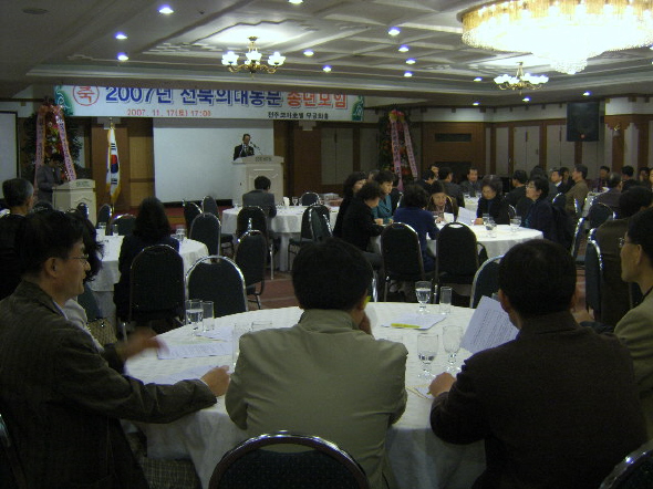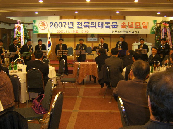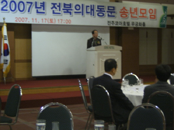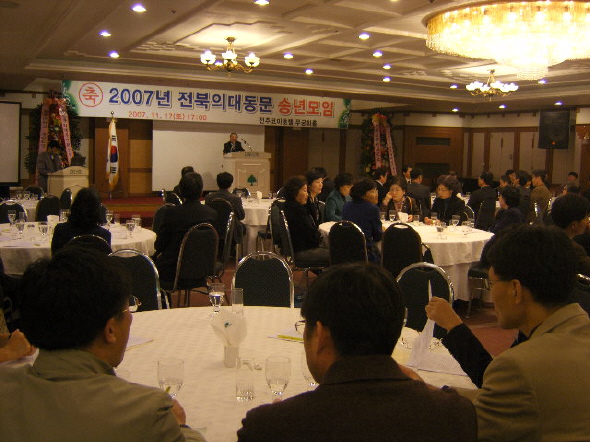 2007년 전북의대동문 송년모임 행사가 지난 11월 17일 토요일 전주 코아호텔 2층 무궁화 홀에서 오후 5시에 등록을 시작으로(사회 : 15회/정우석 정보통신이사) 성황리에 진행되었다. (내용-게시판,공지사항에 게재) |