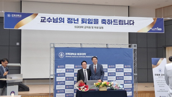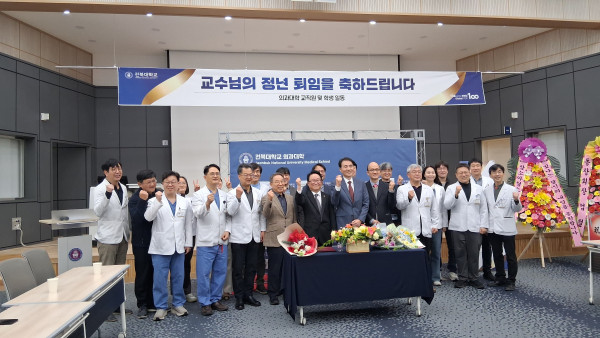 이번 기념식은 개별 점심 식사 후 차담회 형식으로 진행되었으며, 동료 교수와 제자들이 참석하여 정든 교정을 떠나는 교수님의 새로운 출발을 축하했다. 전북대학교 의과대학·의학전문대학원 엄철 동창회장은 대학의 위상을 높이는 데 기여한 교수님께 동창회를 대표해 깊은 감사를 표했으며 이어 전북대학교 의과대학 교수회 정연준 회장은 환자 진료의 모범이 되어 주시고, 헌신적인 전공의 교육으로 응급의학의 기틀을 닦아주신 노고에 존경의 마음을 전했다. 강경표 학장은 송사를 통해 석별의 아쉬움과 고마움을 전했다. 퇴임하는 진영호 교수님는 지난 세월 학교와 병원에서 보낸 소중한 시간들을 회고하며 감사의 소회를 밝혔다. 특히 남아 있는 후배 교수들과 제자들에게 전북대학교 의과대학의 지속적인 발전을 위해 부단히 정진해 달라는 당부의 말을 남기며 기념식을 마무리했다. 출처:전북대학교의과대학 소식지 [이 게시물은 동문지기님에 의해 2026-04-03 10:31:00 공지사항에서 복사 됨] |