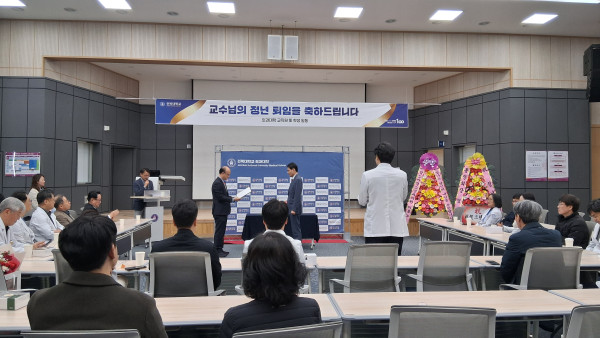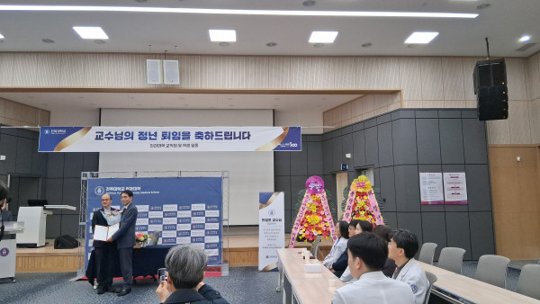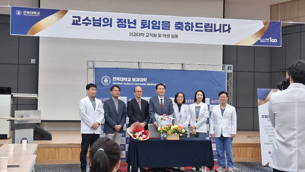 이번 기념식은 개별 점심 식사 후 차담회 형식으로 진행되었으며, 동료 교수와 제자들이 참석하여 정든 교정을 떠나는 교수님의 새로운 출발을 축하했다. 전북대학교 의과대학·의학전문대학원 엄철 동창회장은 대학의 위상을 높이는 데 기여한 교수님께 동창회를 대표해 깊은 감사를 표했으며 이어 전북대학교 의과대학 교수회 정연준 회장은 환자 진료의 모범이 되어 주시고, 헌신적인 전공의 교육으로 응급의학의 기틀을 닦아주신 노고에 존경의 마음을 전했다. 강경표 학장은 송사를 통해 석별의 아쉬움과 고마움을 전했다. 퇴임하는 진영호 교수님는 지난 세월 학교와 병원에서 보낸 소중한 시간들을 회고하며 감사의 소회를 밝혔다. 특히 남아 있는 후배 교수들과 제자들에게 전북대학교 의과대학의 지속적인 발전을 위해 부단히 정진해 달라는 당부의 말을 남기며 기념식을 마무리했다. 출처:전북대학교의과대학 소식지 [이 게시물은 동문지기님에 의해 2026-04-03 10:31:00 공지사항에서 복사 됨] |